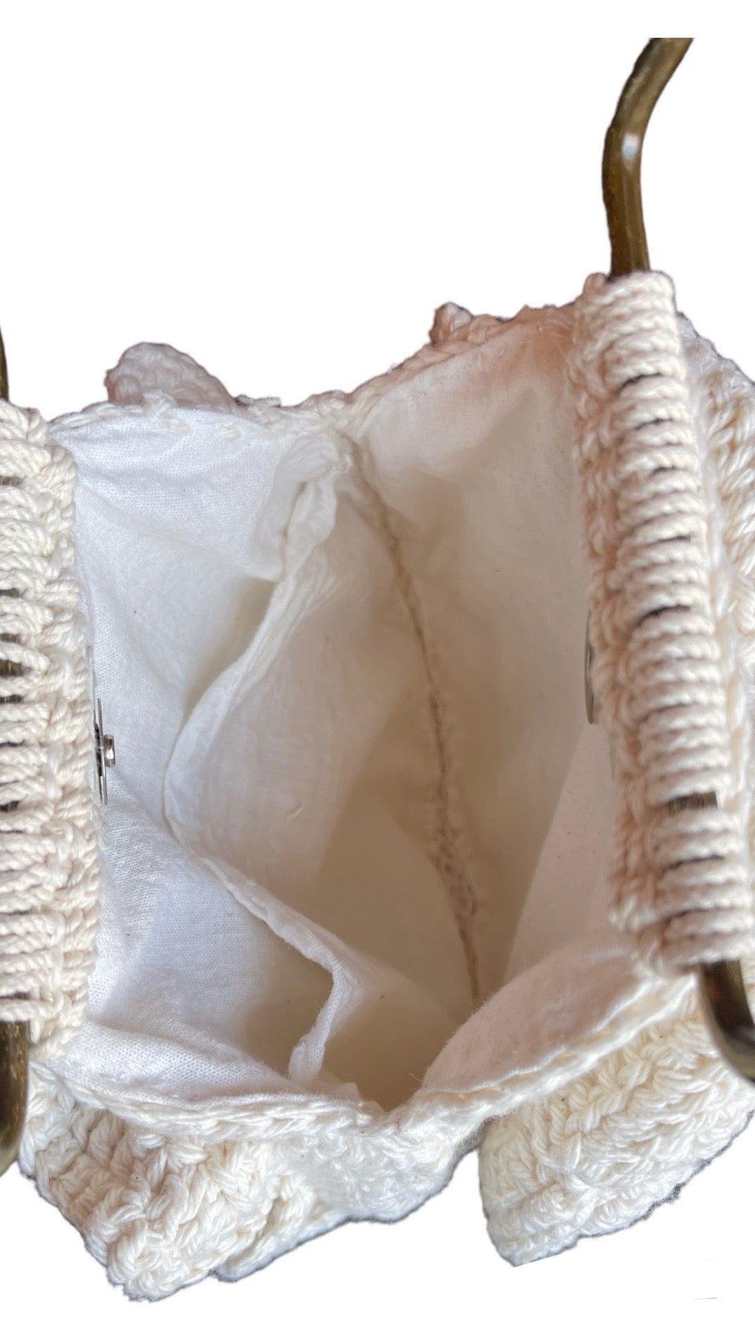Está elaborado en hilo de algodón, asa de metal y forrada en tela.